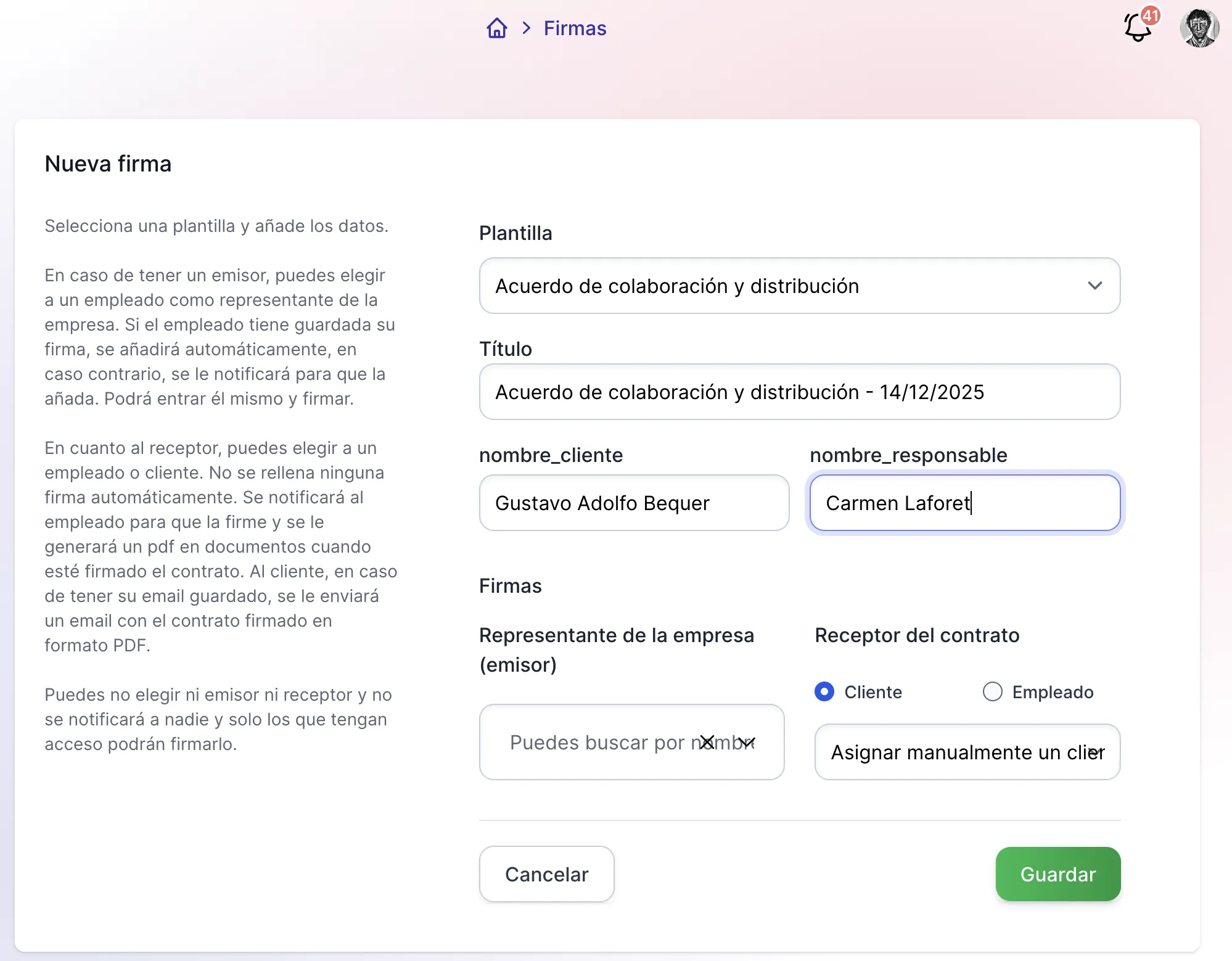 Asigna firmantes y gestiona el proceso completo