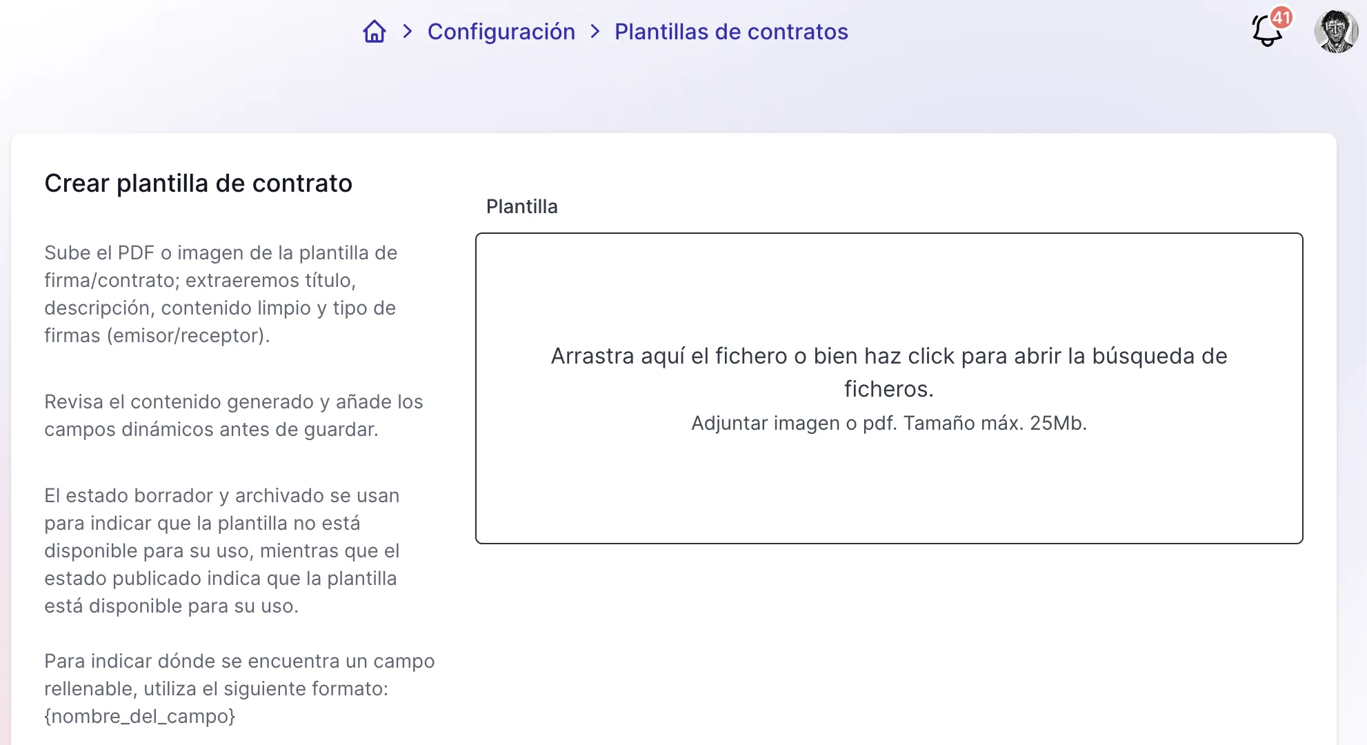 Desde el dashboard de contratos, visualizas el estado de cada documento: